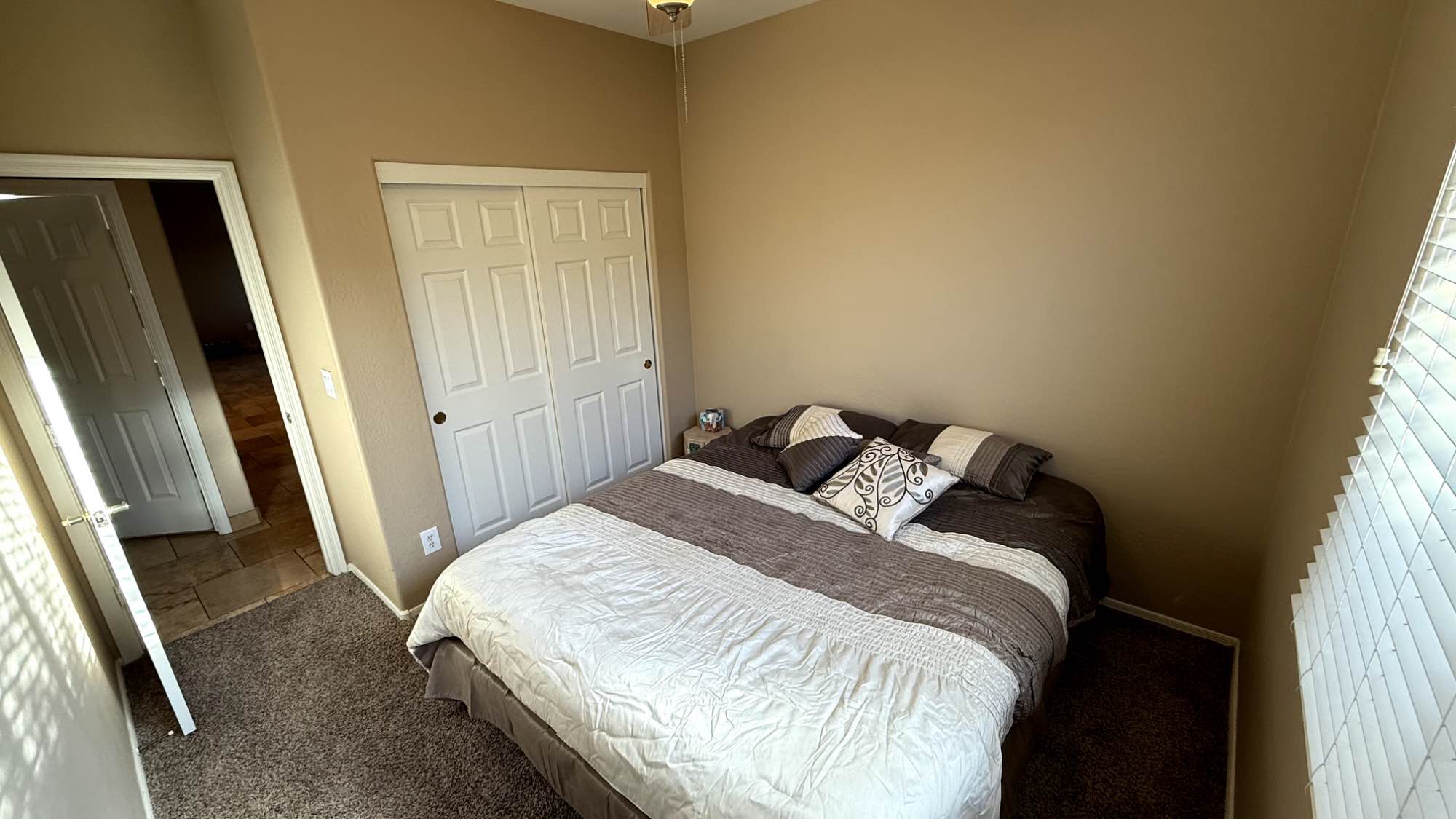have a King size bed available for your use if you want to use it. Full access to fully furnished house including kitchenware, laundry, living room and back yard. 1 attached garage space included. The house has 2 bathrooms but the other one is in the master so the remaining one is also for guests / if another roommate moves in. This home is located in Anthem off of Daisy Mountain road in a nice quite peaceful neighb
