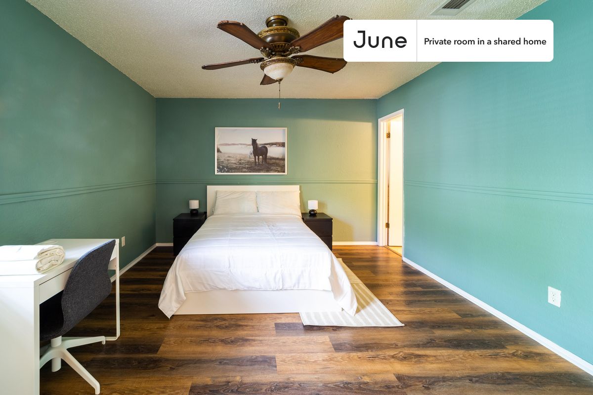 Queen bedroom in a 3 bedroom / 2 bathroom apartment! Check out 3D tour now: https://jnhm.es/89Y This Queen room in North Austin is available on a flexible 1-18 month lease. Monthly rent rate is determined by furnishing preference, move-in date and move-out date. Speak to a June representative for recommendations on the best stay duration for the lowest rate, and learn more about this home on the June web