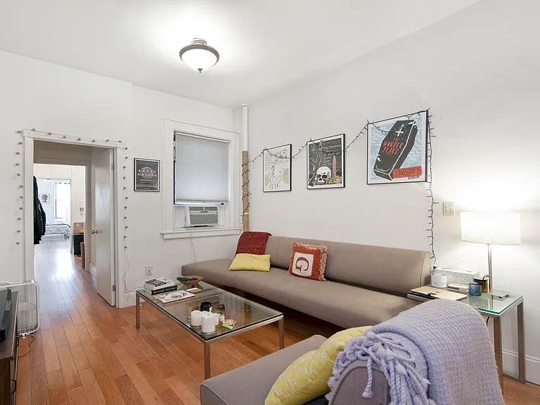 The apartment is a railroad style with lots of extra room and privacy from the living room to the bedroom areas. The west end of the apartment opens up to the large bedroom with closets. There is room for a queen sized bed, plus additional bedroom furnishings. Between the BR and the Living room is the Den/Office/large closet space. This space is large enough for a desk and other furniture. Perfect for a home office w