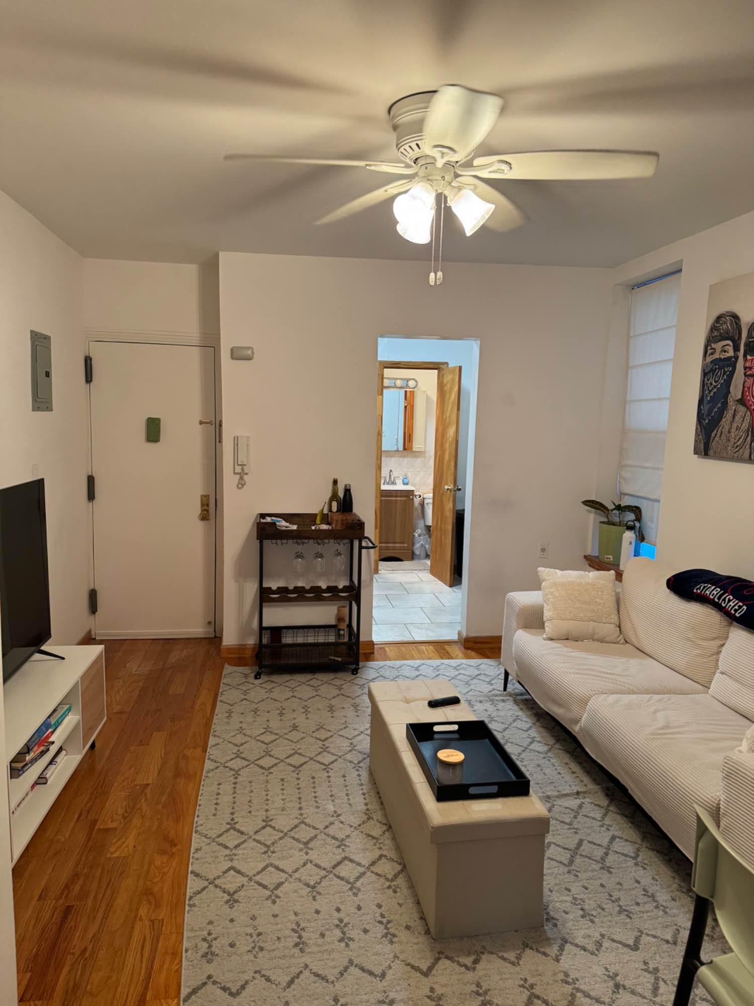 Spacious 1 Bed/1 bath full kitchen in heart of East Village near Tompkins Square Park. Fully furnished, AC, Wifi, gas/electric included. Spacious bedroom w Queen bed, closet, dresser, desk.