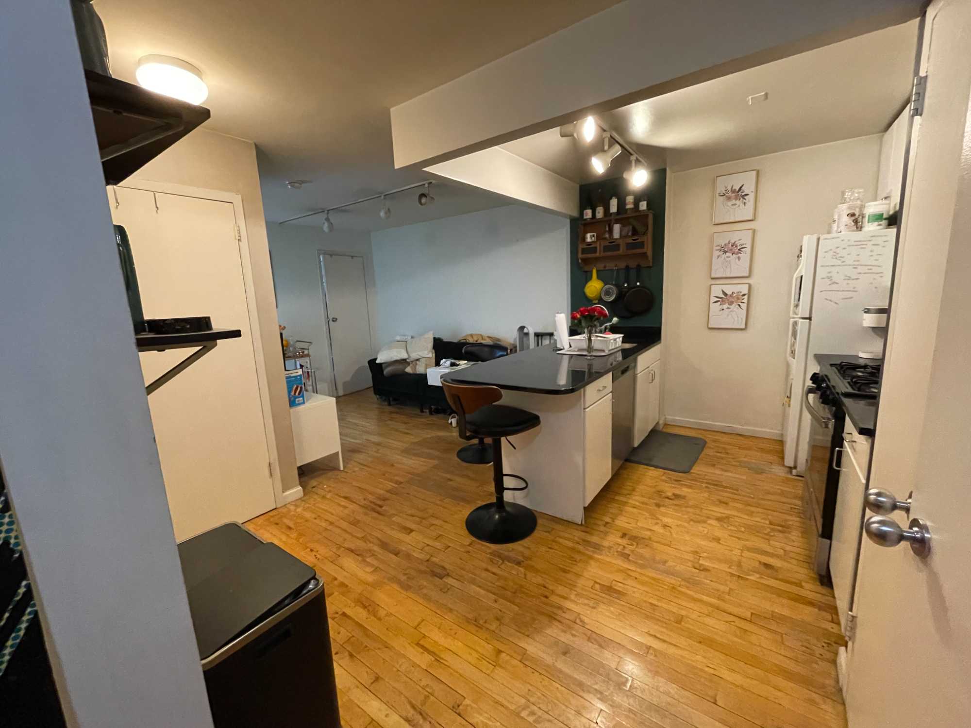 I'm looking to sublease my bedroom in a 3 bedroom unit in the East Village (190 E 7th Street). The building is right next to Tompkins Square Park, surrounded by bars, coffee shops, and restaurants, and is approx. 8 minutes walking distance from the L (1 Av) and F (2 Av) trains. Your roommates will be 2 working professionals: 1. female, late 20s, works non-remote in the afternoon and late nights, 2. male, early 30s,