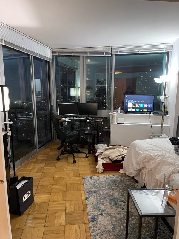 About me: 34/m works in advertising About the apt: Personal Balcony, laundry in building, parking garage, rooftop access, gym, package room, elevators, mailroom, lounge, 24 hour doorman. 40th fl, overlooking the Hudson and Javits. Large, north-facing floor to ceiling windows. Can be furnished upon request Hi, I’m Zachary. I work in digital advertising. I spend majority of my free time watching TV and drinking cof