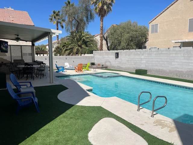 Huge house with beautiful pool area and home gym. Private room and bathroom available with large shared spaces: 2 living rooms and dining area. Garage parking in a wonderful neighborhood.