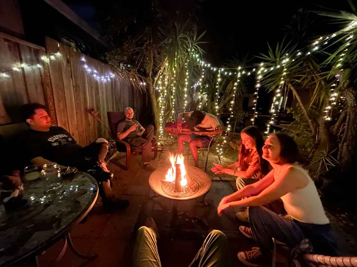 We’re ten(ish) people sharing a house in Redwood City. Our goal is to create a fun, chill, affordable place for people to live and get along. Outside we have a pool, hot tub, sauna, garden, and some great areas to sit and read. Inside, we have a great kitchen (with a couch in it!), a little gym and workshop in the garage, and a great big projector for watching movies together Oh, and, we have a cat. https://mcma