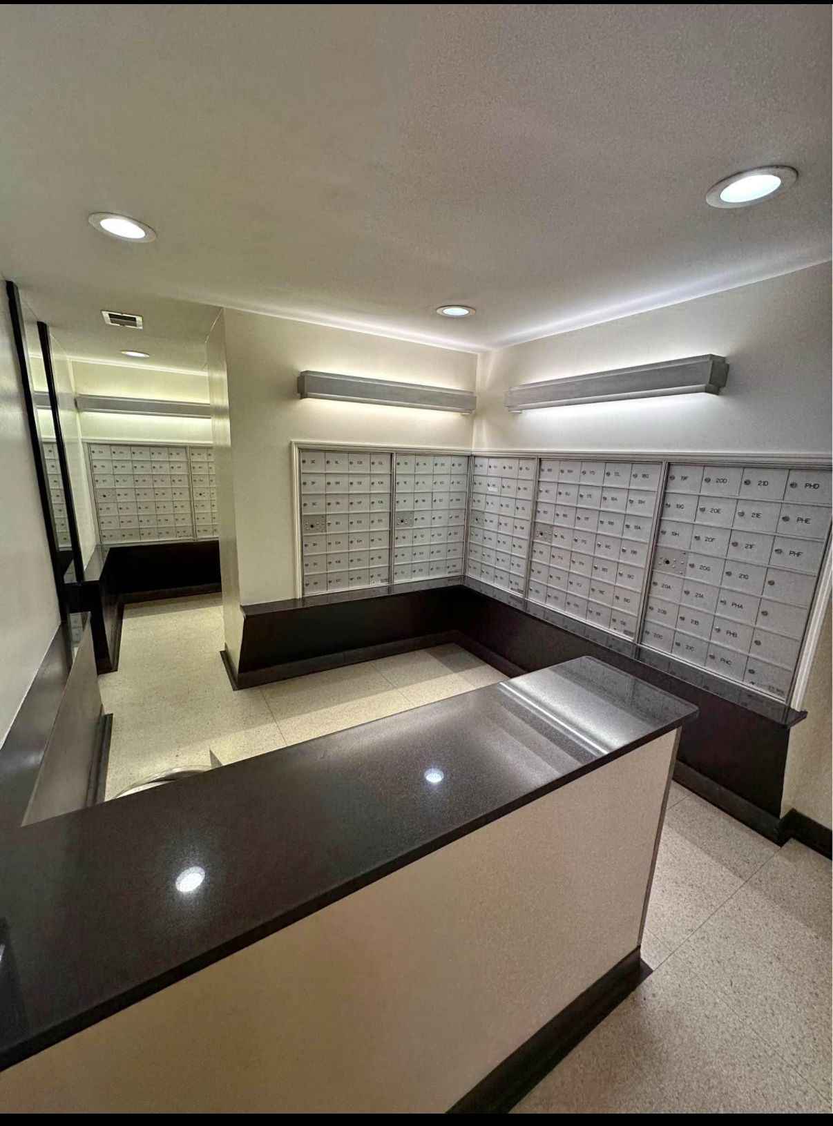 - Elevator and mailroom