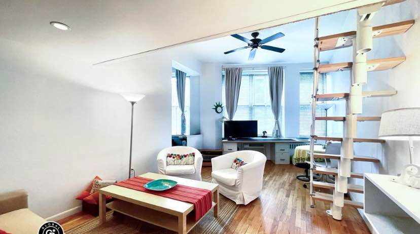 Sunfilled, Studio-(COMES FULLY FURNISHED) in Landmark Pre-War building., Southern exposure, Spacious sleep/Storage loft, linens, towels + everything you need is included. Separate windowed kitchen, Elevator, On site Laundry room. Quintessential charming West Village block, near Gourmet Garage, Corner Bistro, The White Horse Tavern, Magnolia Bakery, Great shopping, the 1,2,3,A,C,E,L trains. No smokers. Move in date ap