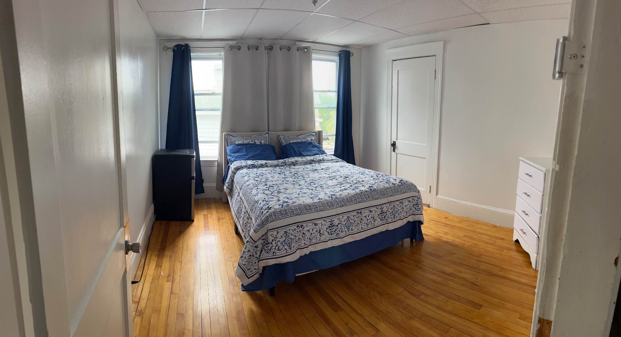 The room is a queen size bedroom with closet inside. The room includes a Queen size bed, Mini Fridge, and a 5 drawer chest. The house has extra storage if needed. Laundry inside the apartment. Kitchen and bathroom are shared. Great place for short or long term Females only. Lots off street parking.